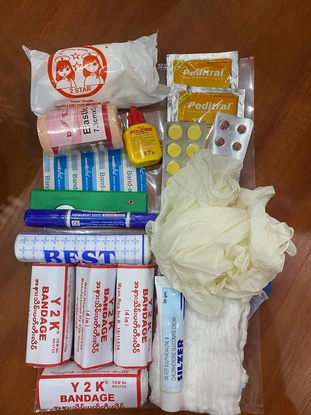 Our circle of friends donated funds for: cotton, bandages, Elastic Bandage, Topical Antibiotic, disposable gloves, Betadine, Electrolytes, Nylon Suture, Softip Spinal Needle, needle, necessary supplies and distributed these to health workers in towns in the Mandalay, Kachin, Kayar, Karen, Chin, Magwe and Monywa.